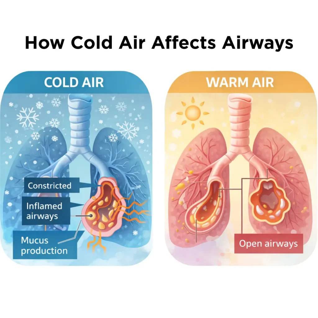 Cold, dry air narrows airways and dries lung tissues, making breathing feel tighter—especially for people with asthma, COPD, or other respiratory conditions.